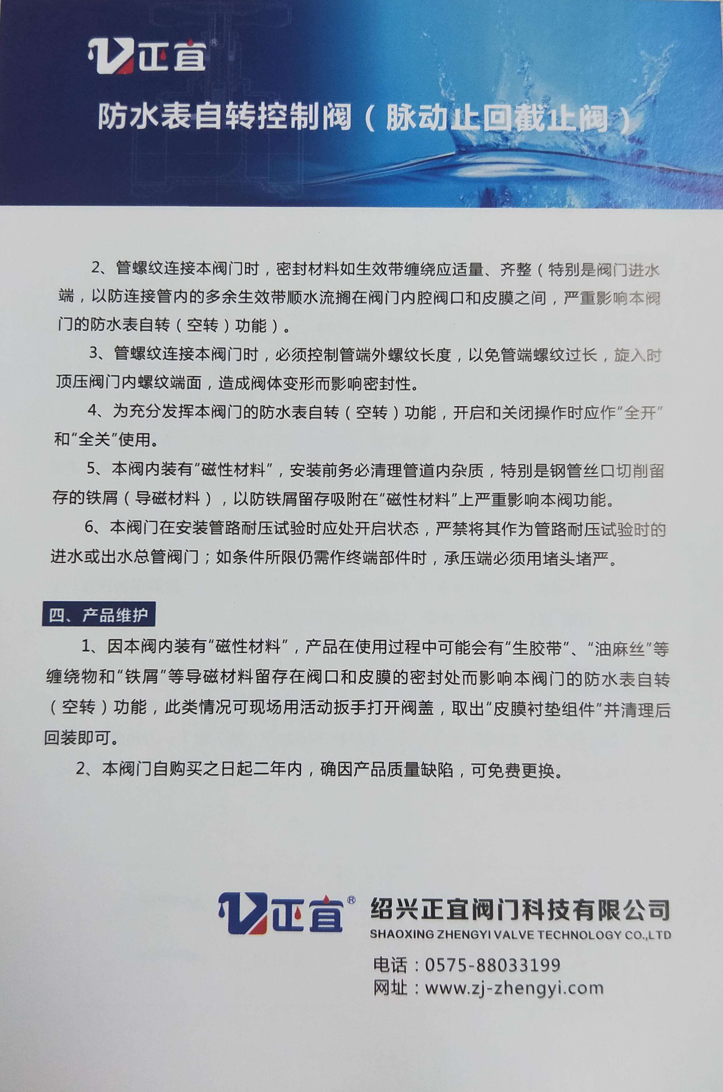 防水表自转控制阀
